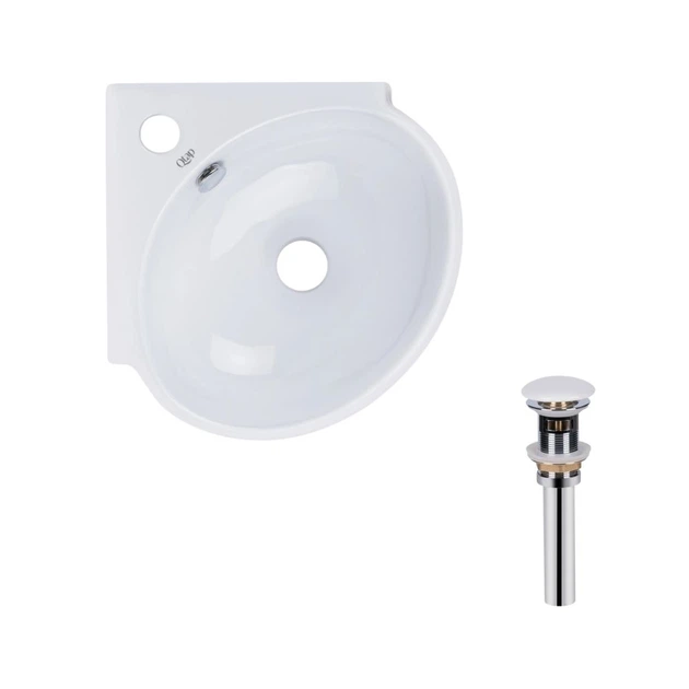 Раковина підвісна кутова овальна Qtap Leo N 385x360x140 мм WHITE + Донний клапан PU02O
