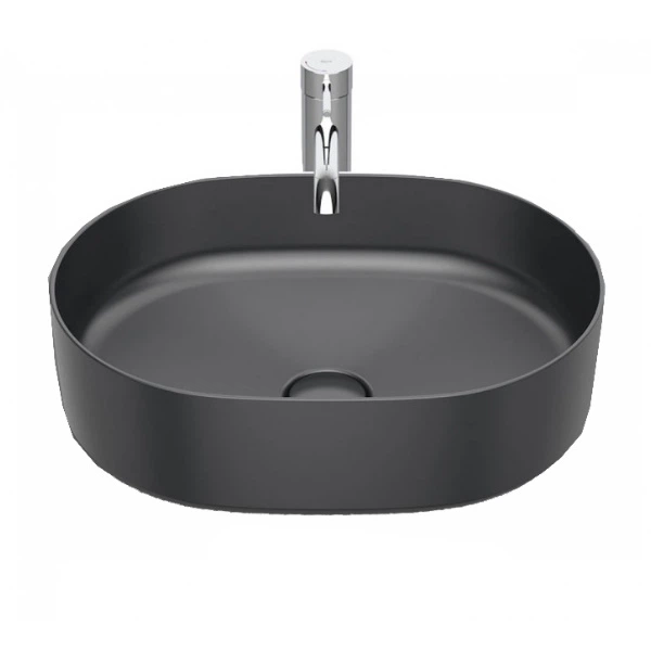 Раковина накладна Roca Inspira Round 500x370 овальна чорна з декоративною кришкою.