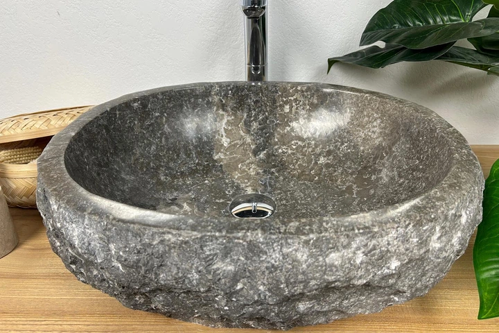 Умивальник накладний з мармуру з унікальною текстурою 53х43х16,5 см Сірий