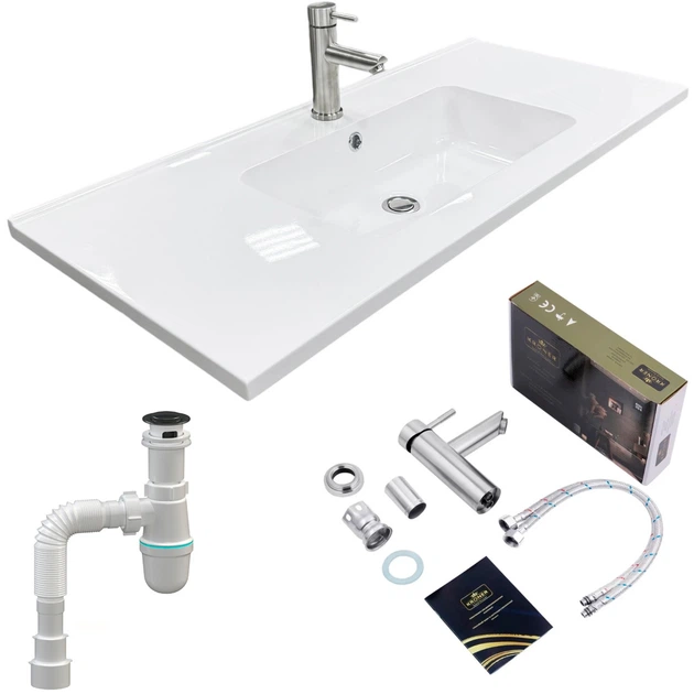 Набір для ванної кімнати, раковина, умивальник Adamant FLATE 100, штучний камінь, прямокут., з сифоном Click-Clack + змішува