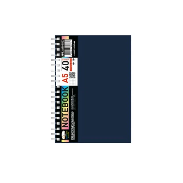 Блокнот А5 АП-1503(Blue) 40 аркушів, пружина збоку