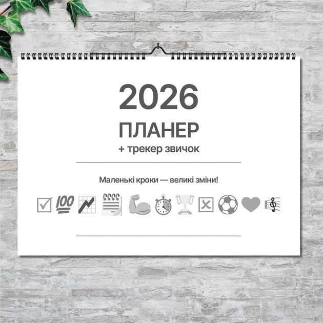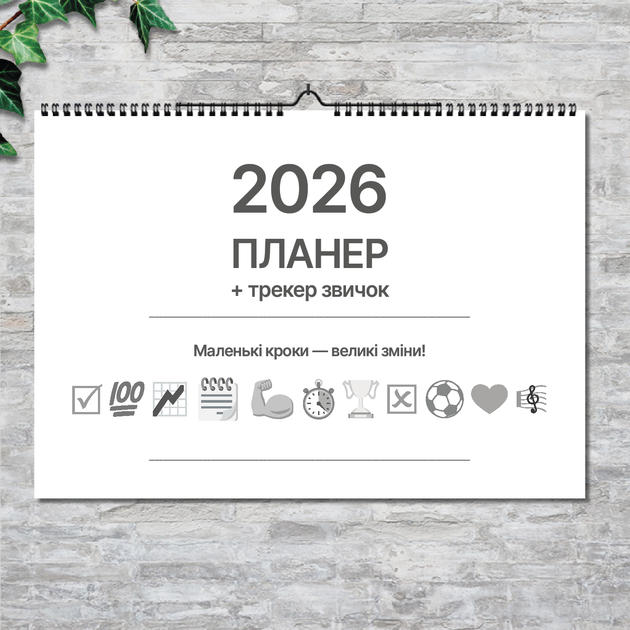 Планер 12 місяців горизонтальний А4 з трекером звичок | Стильний чорно-білий дизайн ENTERSTORE (art. 250213)
