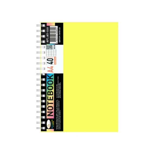 Блокнот А4 АП-1501(Yellow) 40 аркушів пружина збоку