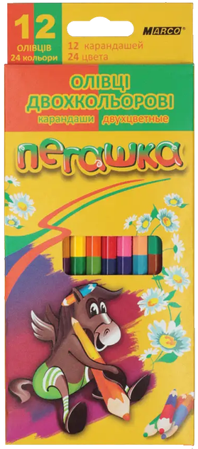 Олівці кольорові 12/24 кольори, двосторонні "Пегашка" 1011-12СВ до/коробка, MARCO