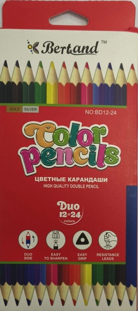 Олівці кольорові 12/24 кольори, двосторонні, трикутні ВD12-24 COLOR PENSILS BERTAND 080034