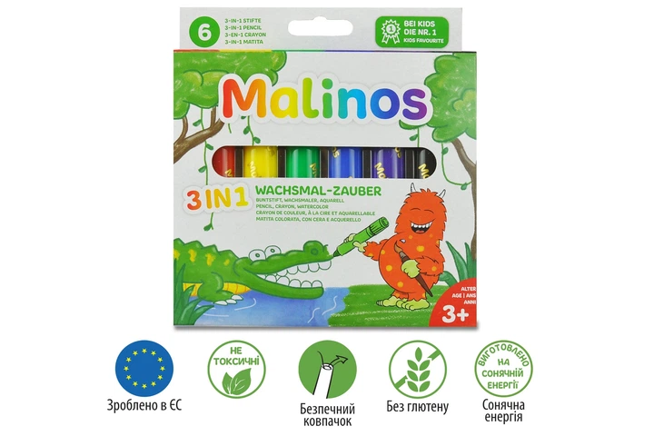 Воскові олівці Malinos Wachsmal-Zauber 6 шт 3 в 1