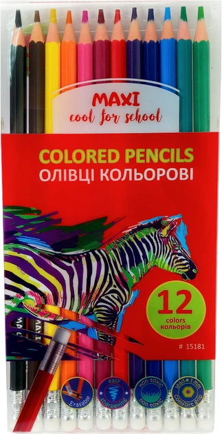 Кольорові олівці Maxi Erasable пластикові шестигранні стираються з гумкою 12 шт (MX15181)