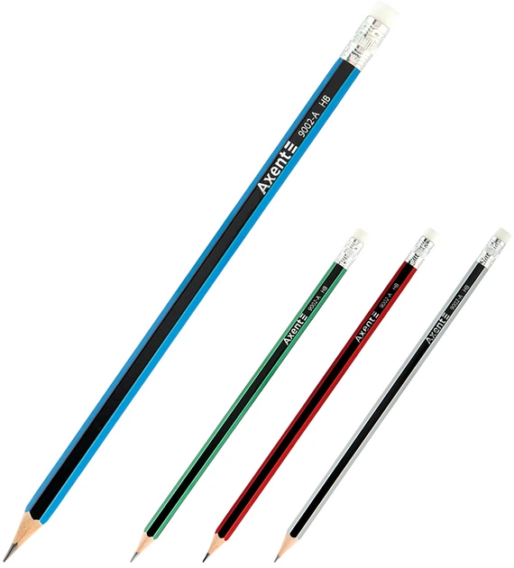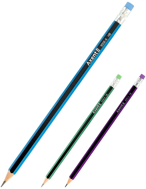 Набір олівців графітових Axent НВ з гумкою, тригранний матовий корпус, колір асорті (9003-A) 12 шт.