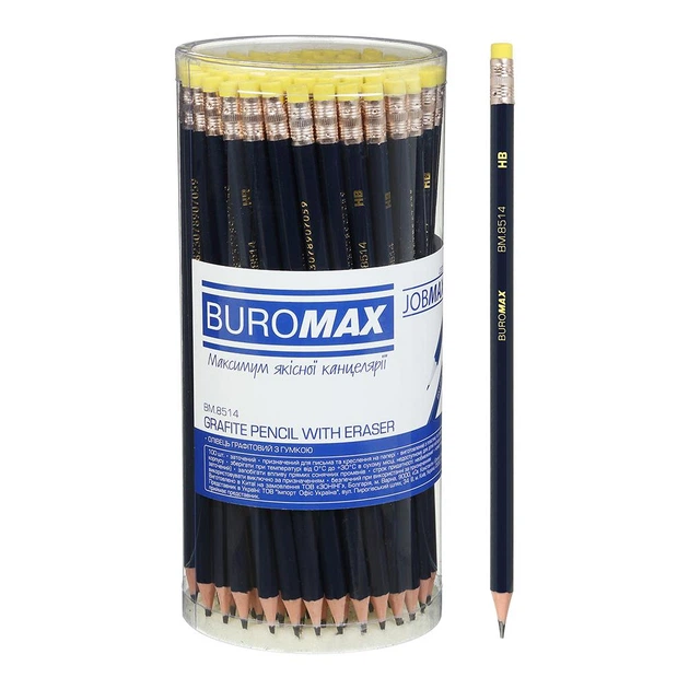 Олівець графітовий, JOBMAX, НВ, з гумкою, пластиковий, синій корпус, 100 шт. (BM.8514-уп)