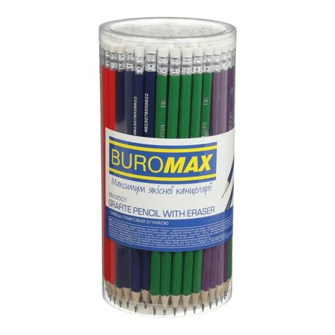 Олівець графітовий COLOR, НВ, с ластиком, ассорти, туба 100 шт. (BM.8501)