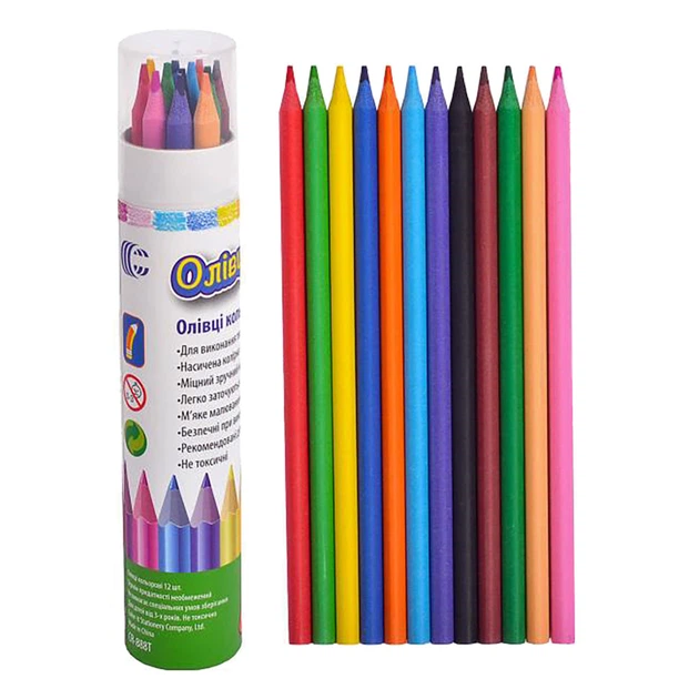 Олівець 12 кольорів cr-888t, еластичний у тубусі "с"
