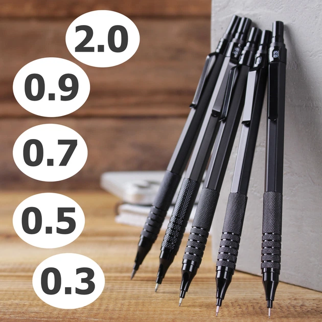 Набір механічних металевих олівців 0.3 - 2.0 мм автоматичні чорні