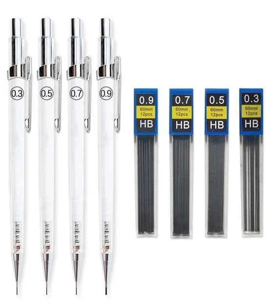Набір механічних олівців 0,3, 0,5, 0,7 та 0,9 мм автоматичних та грифелі стрижні