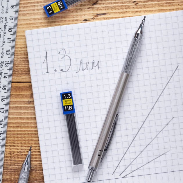 Механічний металевий олівець 1,3 мм автоматичний та грифелі