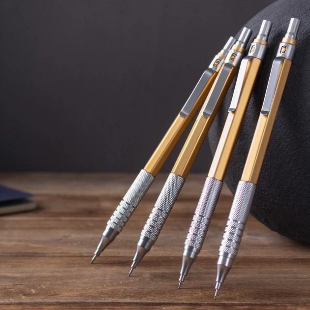 Набір механічних металевих олівців 0.3 - 0.9 мм автоматичні срібно-золотисті