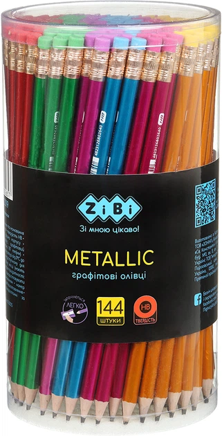 Набір графітових олівців ZiBi Metallic HB з гумкою 144 шт (ZB.2319)
