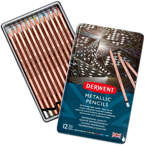 Набір кольорових олівців Derwent Metallic 12 кол. мет.короб (2305599) (2305599)