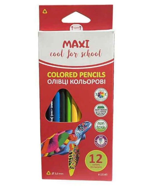 Олівці кольорові 12 кольорів трикутні з точилкою Milan Maxi