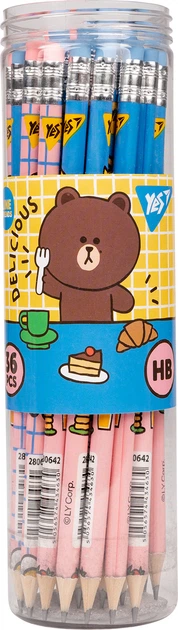 Набір олівців чорнографітних YES Line Friends Choco трикутні з гумкою тубус 36 шт (280669) (5056574434906)