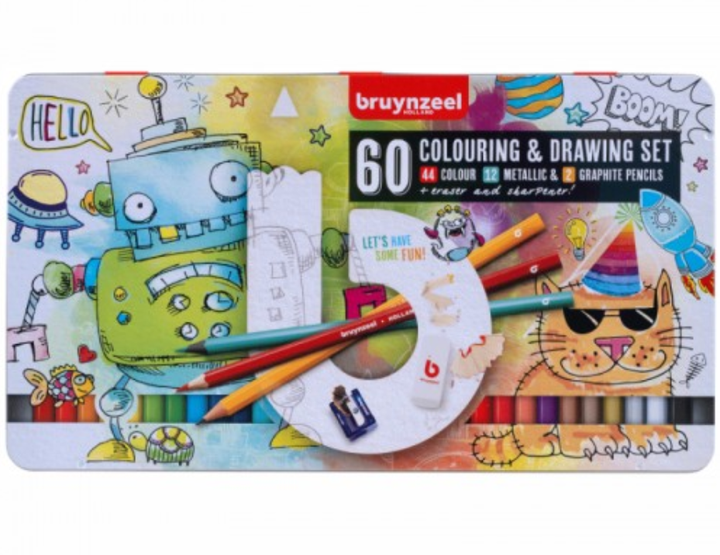 Набір кольорових олівців SMALL ARTISTS 58 шт ластик, стругачка, мет.коробка Bruynzeel