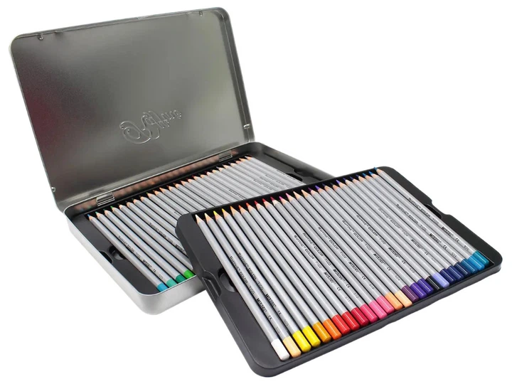 Кольорові олівці для малювання Raffaine набір 50 кольорів у металевому пеналі.