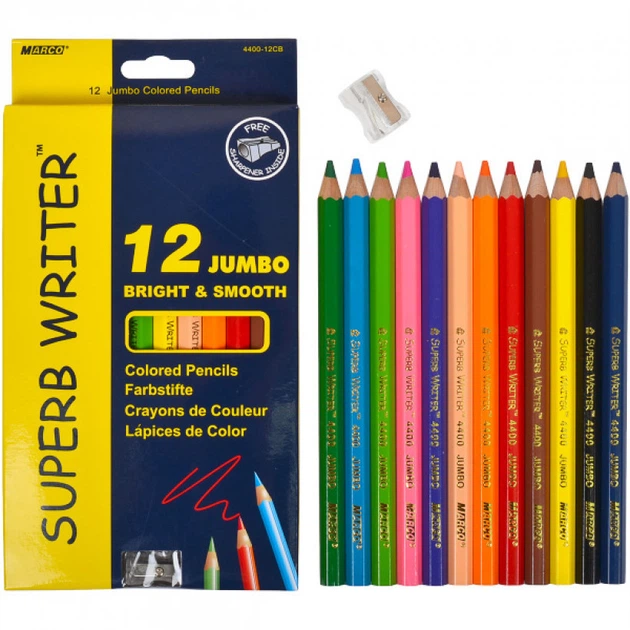 Кольорові олівці для малювання JUMBO Superb Writer набір 12 кольорів.