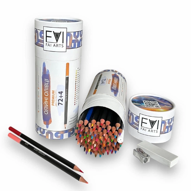 Олійні кольорові олівці FaiArts 72 кольори - набір м'яких олівців для малювання з аксесуарами