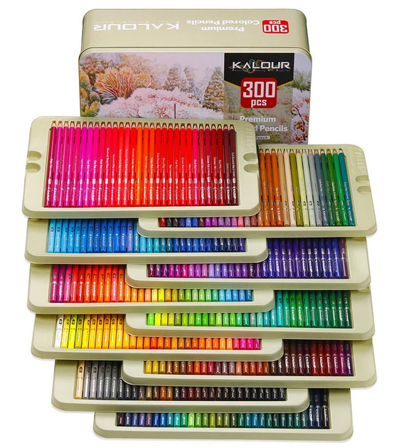 Професійні кольорові олівці на масляній основі 300 кольорів в металевому пеналі Kalour