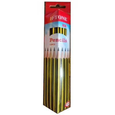 Олівець графітний H-Tone НВ, триграний, з гумкою, жовтий із чорним, уп.12 шт (PENCIL-HT-JJ30129)