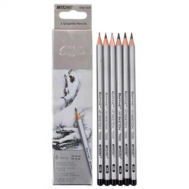 Набір графітних олівців різної твердості 2Н - 3B , 6шт 7000 -6CB Raffine MARCO