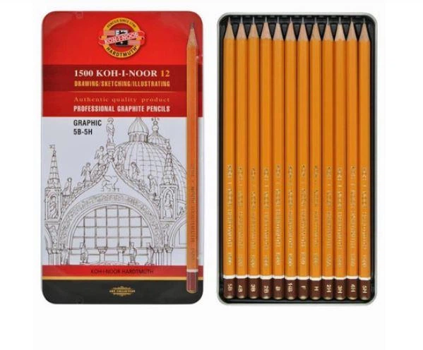Набір графітних олівців "KOH-I-NOOR" /1502.III/ Graphic для графічних робіт, 5B–5H, 12 шт., металева уп.