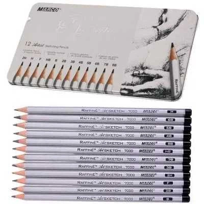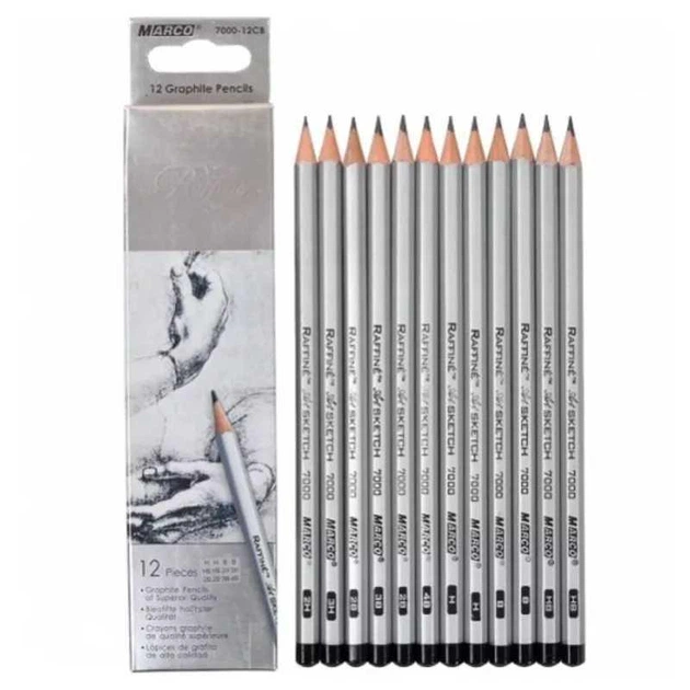 Набір графітних олівців різної твердості 3Н - 4B , 12шт. 7000-12CB Raffine MARCO