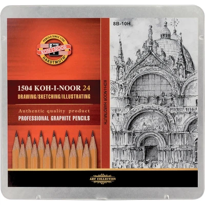 Олівець графітний Koh-i-Noor Набір 8В-10Н металевий пенал 24 шт (1504)