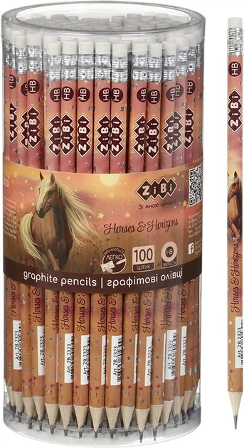Набір графітових олівців ZiBi Horses HB з гумкою 100 шт (ZB.2323)
