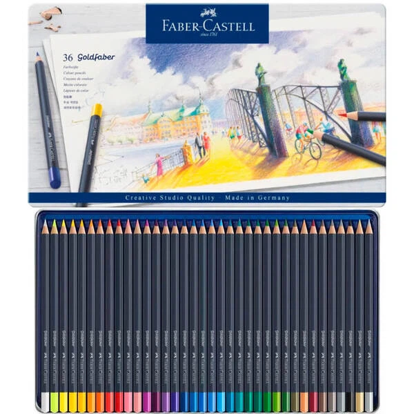 Олівці акварельні кольорові Faber-Castell Goldfaber 36 кольорів, металева коробка