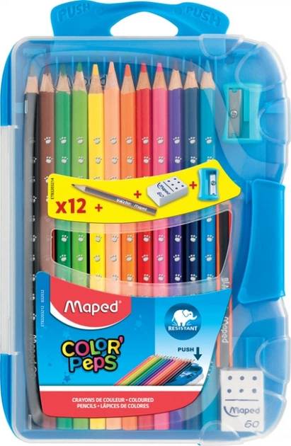 Кольорові олівці Maped Color Peps Smart Box 12 кольорів з чинкою, гумкою і міні-олівцем (MP.832032)