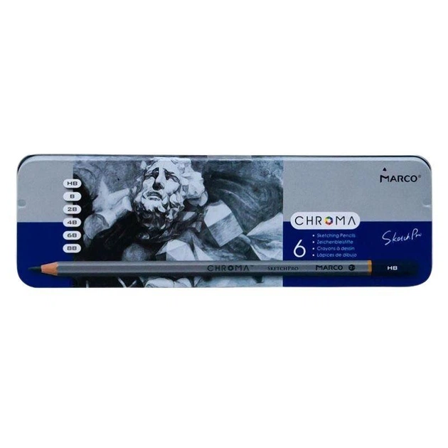Набір графітних олівців Marco Chroma 6 штук НB, B, 2B, 4B, 6B, 8B у металевому кейсі (1015-6TN)