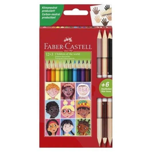 Олівці кольорові 12кол. Faber-Castell 511514 Bicolor Skintones трикутні +3шт. двостор. /511514/