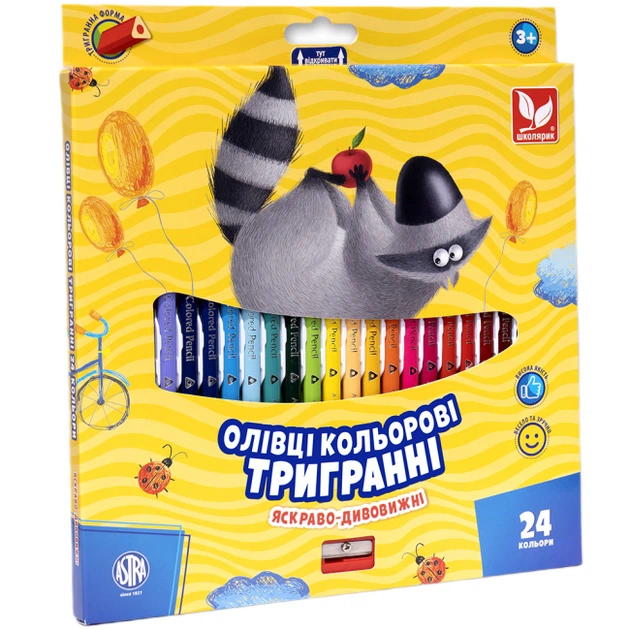 Олівці 24 кольори тригранні з точилкою 312110003-UA Школярик (4823088216899)