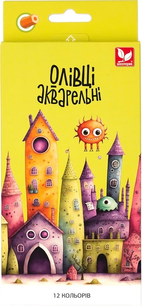 Олівці акварельні шестигранні 12 кольорів з пензликом 134SH-12 Школярик (134SH-12)