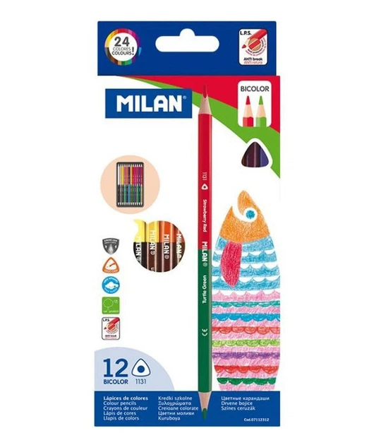 Набір кольорових олівців Milan 12шт, двосторонні тригранні 07112312
