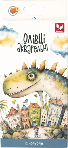 Олівці акварельні шестигранні 12 кольорів з пензликом 135SH-12 Школярик (135SH-12)
