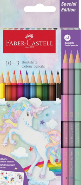 Олівці кольорові 10кол. Faber-Castell 111219 + 3кол. Пастель "UNICORN" /111219/