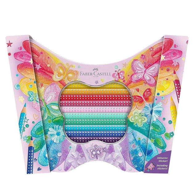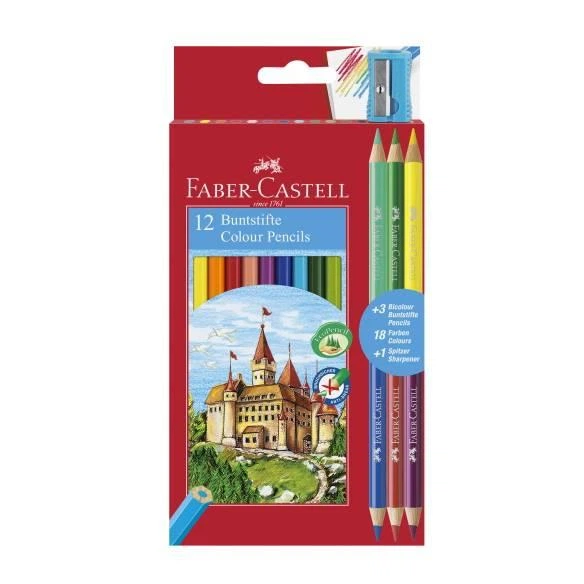 Олівці кольорові Faber-Castell 12 кольорів + 3 штуки двоколірні "Замок"+ точилка, картона упаковка