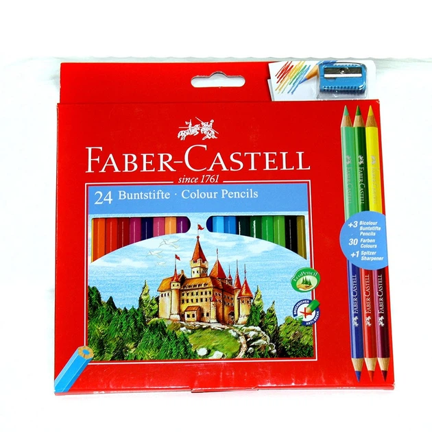 Олівці кольорові Faber-Castell 24 кольори + 3 штуки двоколірні "Замок"+ точилка, картона упаковка
