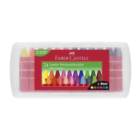 Воскові олівці - мел Faber-Castell 24 кольори, тригранні, Jumbo, пластиковий пенал