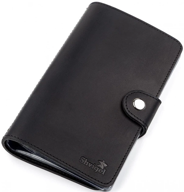 Велика шкіряна візитниця SHVIGEL чорного кольору унісекс з натуральної шкіри (bg139fash05)