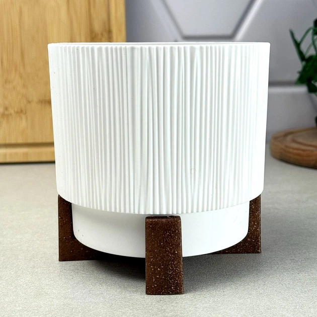 Горщик для квітів пластиковий ребристий на підставці діаметр 26 см
