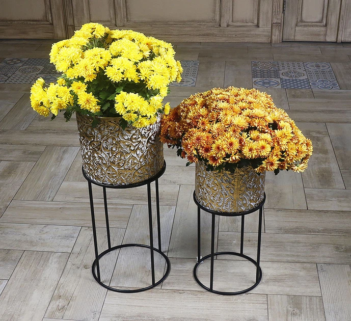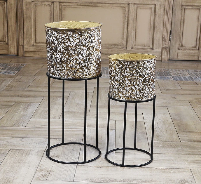Набір кашпо для вазону з металу на підставці 2 шт. Гранд Презент 92104