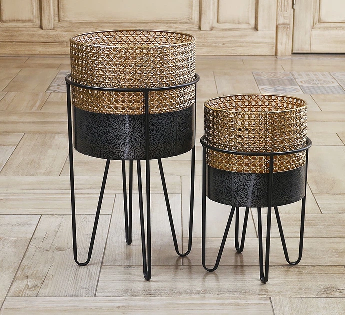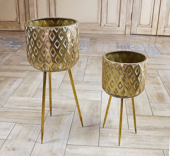 Кашпо набір з 2-х шт Prezent Стенд золотий метал